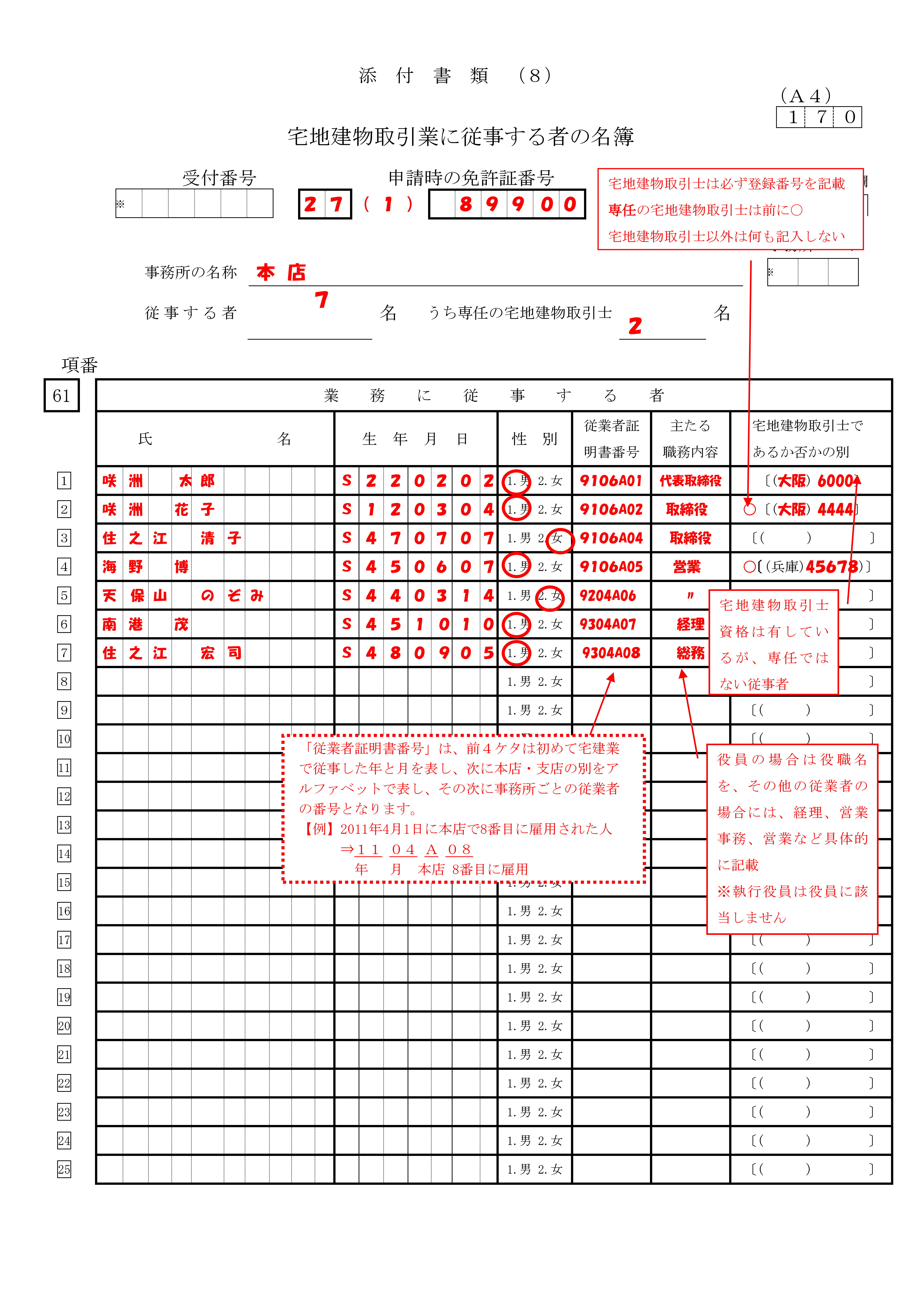 【変更届(大阪府知事免許)】政令で定める使用人の就任、退任