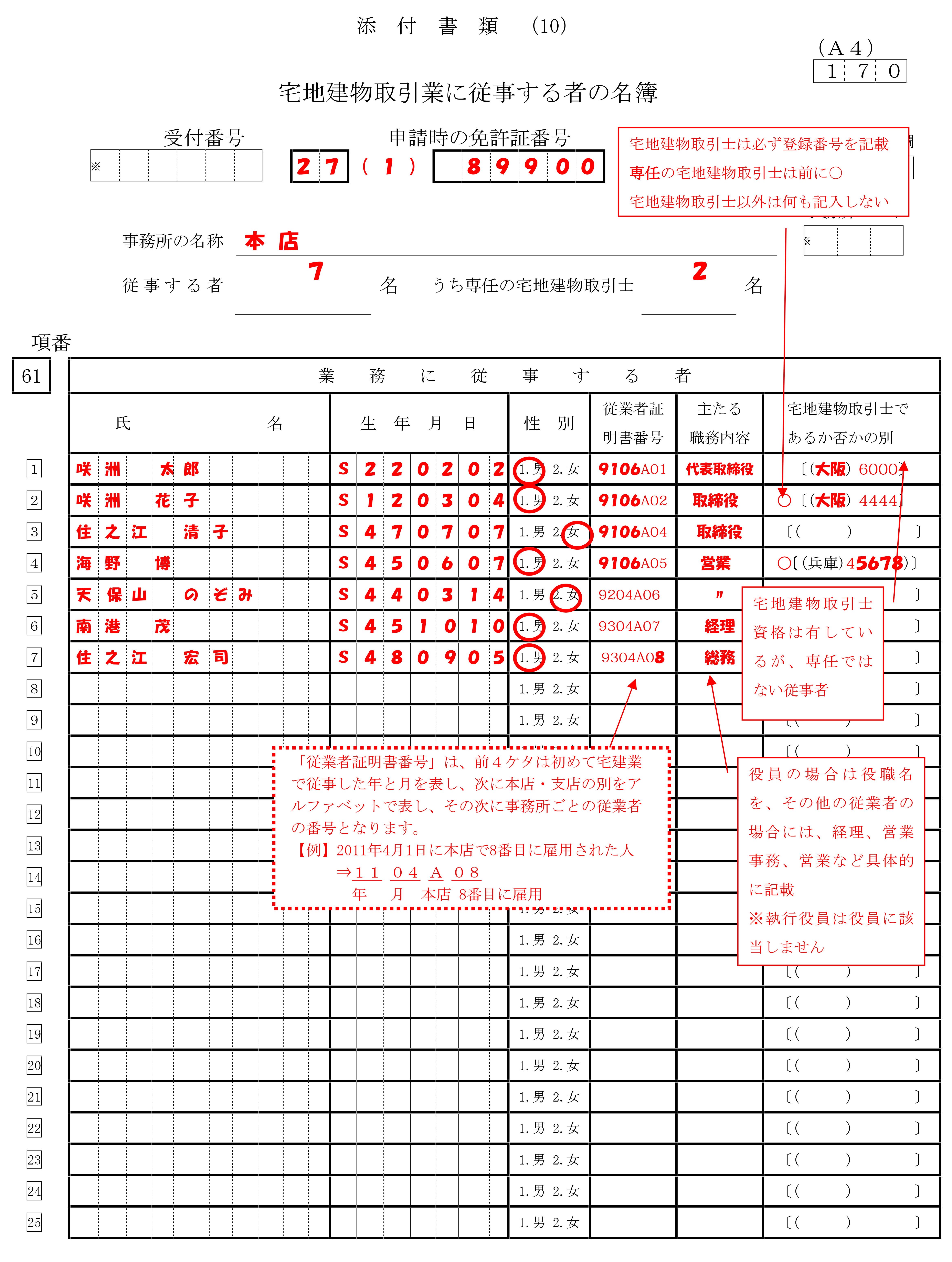 専任の宅地建物取引士の増員なので、項番11、12には記入は不要です。