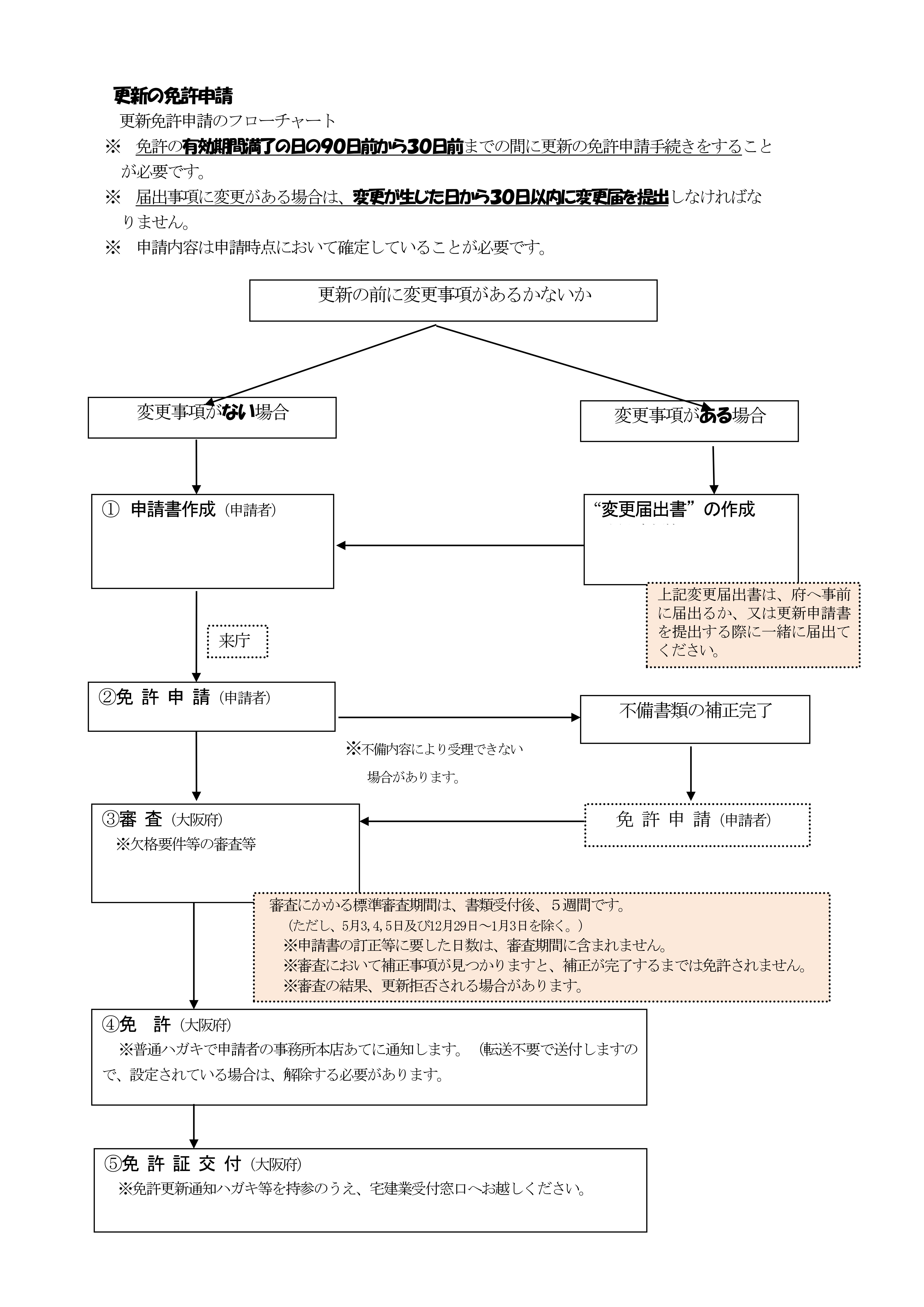宅建業免許更新イメージ(出典:大阪府宅建業免許申請の手引きより一部抜粋)